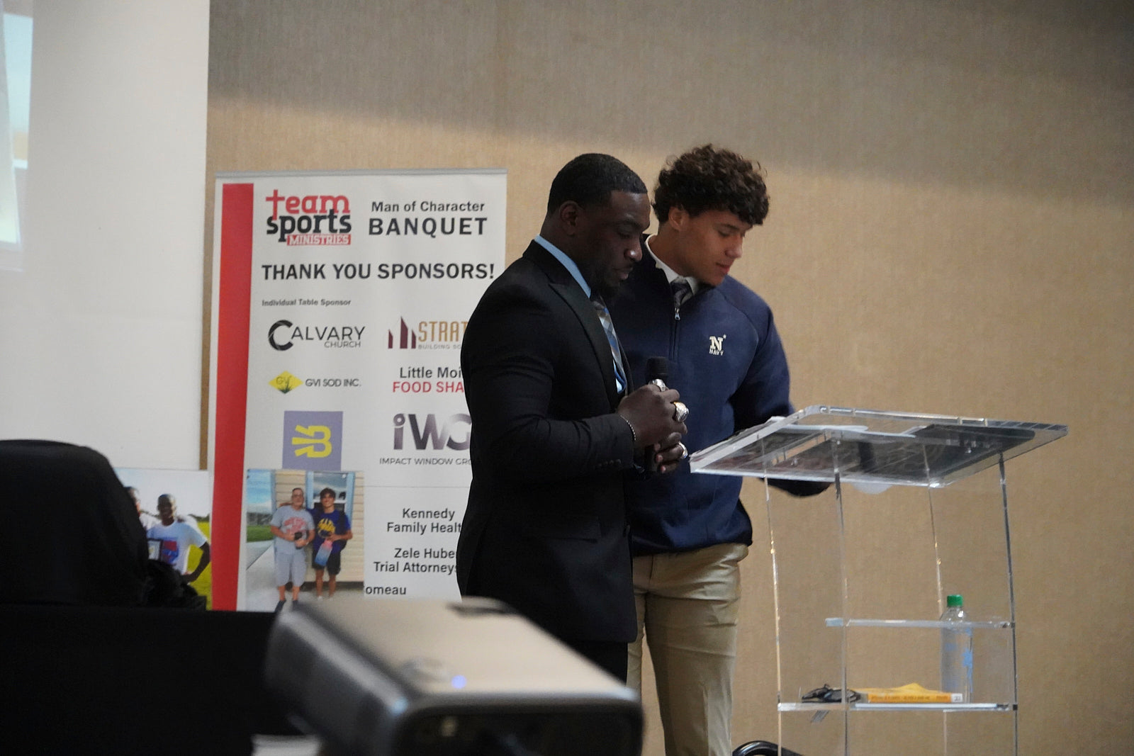 At the banquet, we had the privilege of having Gerald Hearns, serving as our event MC. We recognized and honored one senior from each school we serve and presented a Team Sports Ministries Scholarship. Our fellow guest speakers, delivered speeches on key principles that our team has mentored throughout the year. Our speakers included Cayden Alula, Justin Kasper (Kasper Electric - CEO), Steven Cavanaugh, and Israel Morgan. Naji Tobias, Sports Analyst and High School Football Media Broadcaster, of Palm Beach Prep, conducted one-on-one media interviews with each nominee, captured inspiring moments of our event, and recapped our event with Scott Arnold and Gerald Hearns. We extend our gratitude to all our sponsors, donors, coaches, families, Airport Hilton - West Palm Beach, volunteers, staff, players, and everyone involved in making this event a success. Your support is vital to our vision and mission.